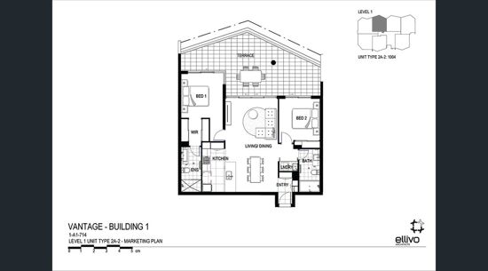This Modern two bedroom North-West facing garden apartment in the Dusk Building Vantage (Stage 1) on Level 1 with a huge outdoor terrace, awaits you!